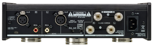 As for the exterior, lightweight aluminum-alloy panels cover a robust steel chassis. A pair of large level meters add visual interest when the amplifier is in action, while TEAC's patent-pending ‘Pin-point’ feet, located at three strategic positions on the underside, add incision to the sound, helping to create a more detailed and stable stereo image.