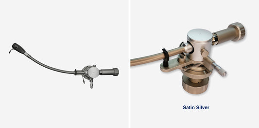 The GrooveMaster 3 tonearm is available in two colors: Satin Silver and a stunning two-color Titanium Gray.