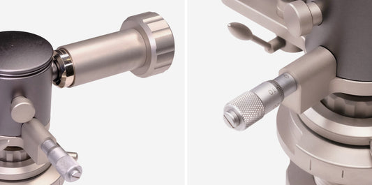 The stainless steel sliding base for the GrooveMaster III is a high quality CNC machined sliding base. The brass sleeve connecting the GrooveMaster is nickel plated. Both materials together with the high mass minimise micro resonances. The unique wedge-shaped construction ensures a quick and play-free adjustment. The GrooveMaster sliding base fits the cutouts of an SME sliding base.