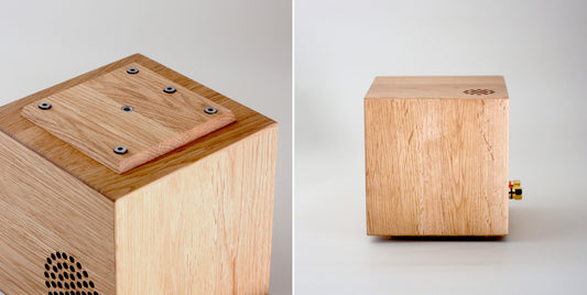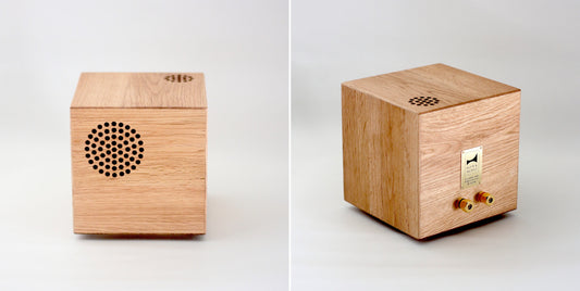 - 2mm-thick oak veneer panels are glued in different directions to allow sound to spread in all directions.